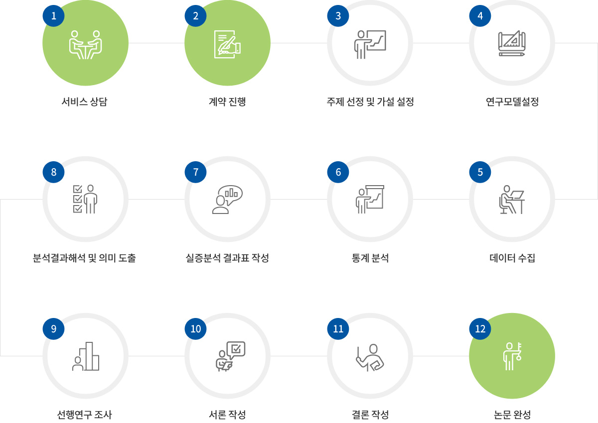 석사학위논문, 박사학위논문, 학술지 등 체계적으로 학위취득을 목표로 논문 주제선정에서 최종심사까지 전공 담당지도박사가 논문작성 및 진도, 일정관리까지 1:1 맞춤식 지도를 해드립니다.